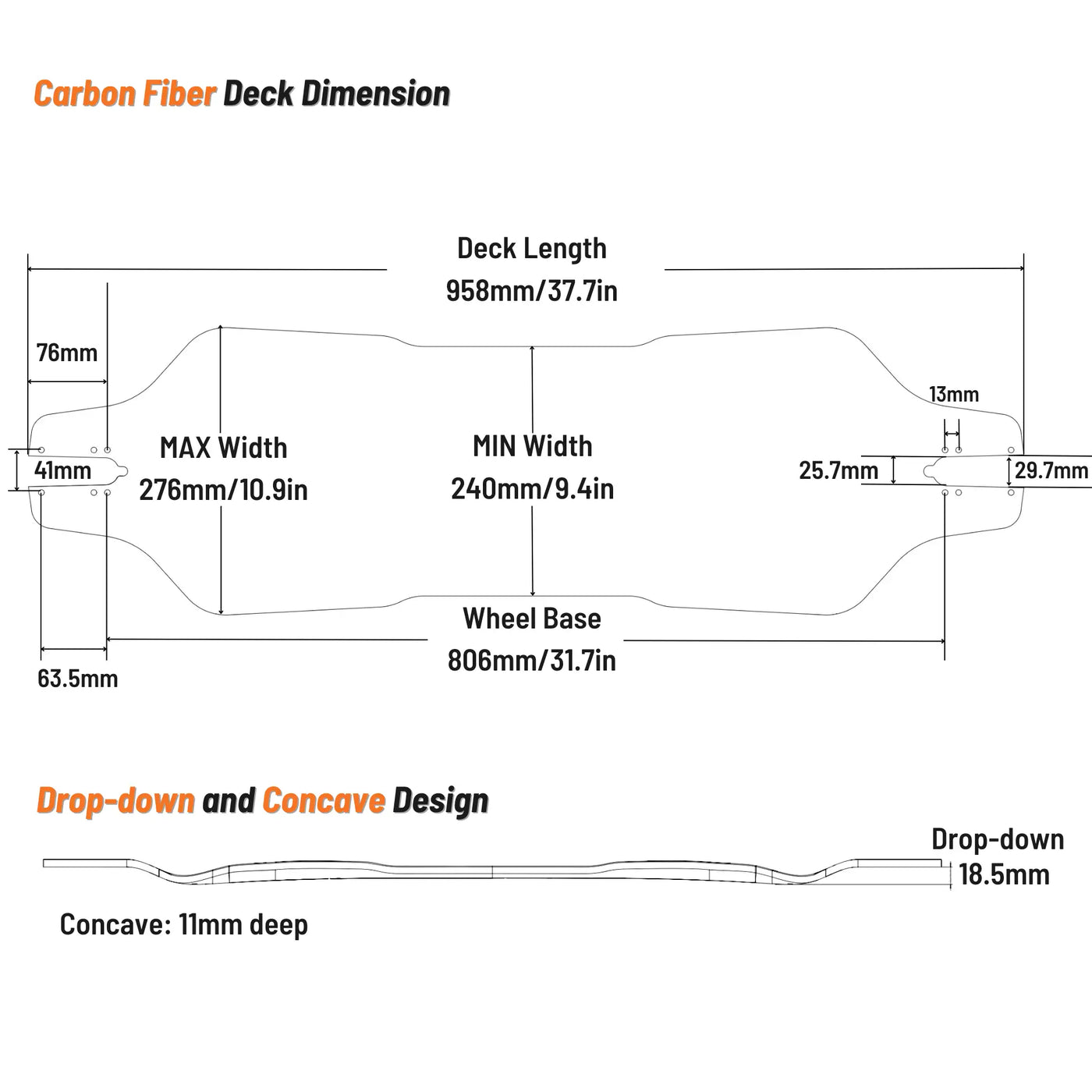 Experience electric skateboarding at its best with our premium composite deck. Crafted from carbon fiber and fiberglass, our deck offers unmatched durability, flexibility.