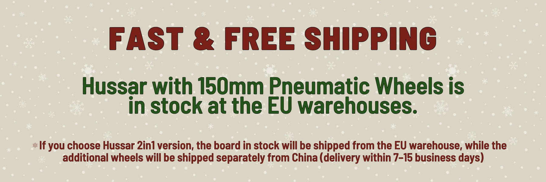 If you order the 2 IN 1 version, the Hussar board will ship from your local warehouse, while the MAD wheels will be shipped separately from the OMW factory (estimated delivery: 7–14 days).