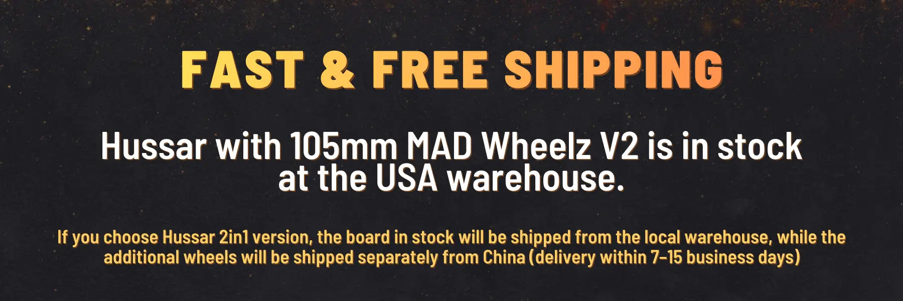 If you order the 2 IN 1 version, the Hussar board in stock will ship from your local warehouse, while the additional wheels will be shipped separately from the OMW factory (estimated delivery: 7–14 days).