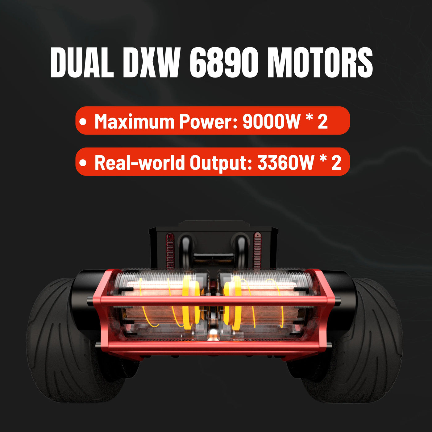 Push the limits with the DXW 6890 dual motor system, engineered for race-level high performance. Each motor delivers up to 9000W maximum power and 3360W real-world output, providing instant torque and explosive acceleration for sprinting, hill climbing, or high-speed cornering. Built for stability and durability at maximum load, this setup maintains precise control even in demanding conditions, making it ideal for riders who require strong, consistent power without compromising handling.